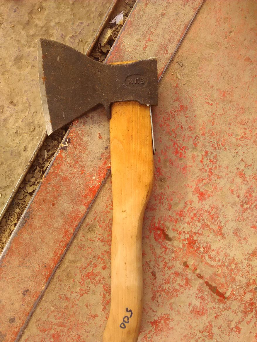 Хватай столько, сколько увидишь. На самом заводе их нет, только отдельно топоры и крепеж.Топорища покупать отдельно нужно. Сталь У7, У8 .Отличной закалки.