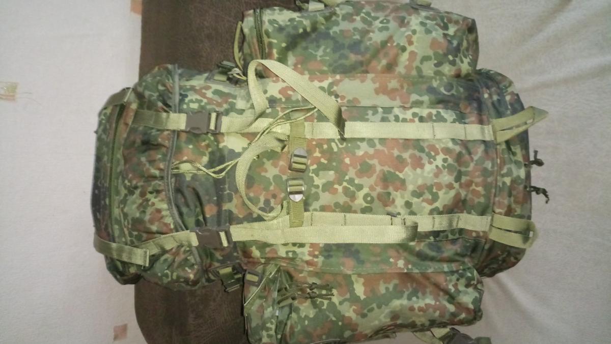 От себя за рюкзак скажу : Свои возможности и выше выполняет, умеют конечно люди делать для армии!Что ещё?Влезает в него .....да все влезает, объём 80 литров + 20 верхом.Нижний клапан как и изнутри так и снаружи открываем!Карманы отстегиваются, превращаясь либо в два, либо в один небольшой рюкзачок!Обвеситься можно всем чем хочешь, крепежи позволяют!Лямки системы Аирмеш, двигаются, изменяются, поясной ремень широкий с большой фурнитурой и крепежом!Материал нейлон, кордура и прочая крепкая хрень!