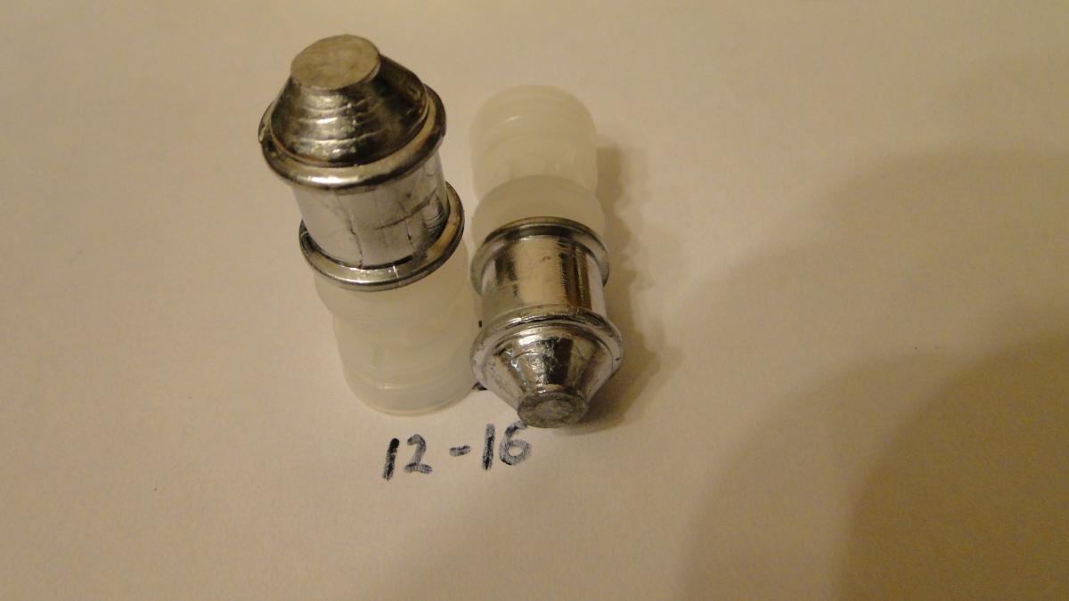 Код 12 - 11 Полева - 1 подкалиберная вес с обкладками 34,7 гр полетный 32,7 гр. высота 40 мм диаметр тела пули 16 мм цена 30 руб.