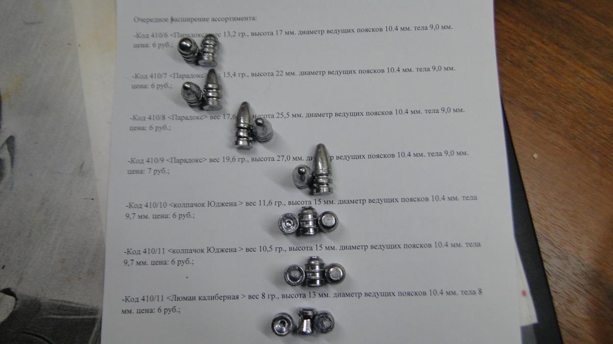-Код 410/5 <Парадокс> вес 16,5 гр., высота 25,5 мм. диаметр ведущих поясков 10.4 мм. тела 9,5 мм. цена: 7 руб.;