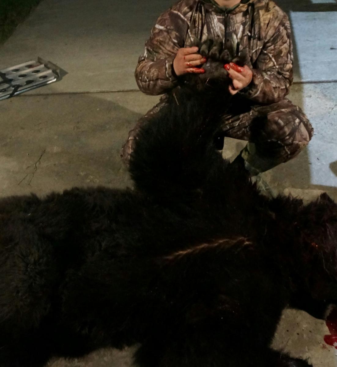 Медведь начал шалить - стал появляться рядом с деревней…На коллектив была выписана лицензия со словами: « Добудьте его поскорее, от греха подальше..». Стали искать следы его жизнедеятельности. Эти следы мы нашли недалеко на овсяном поле. Разбили вечерки по очереди, кто будет сидеть и стали высиживать мишу. Но не тут-то было: косолапый все понял и перестал выходить или выходил после того как охотник покидал лабаз на дереве. Так продолжалось три недели. Настала опять моя очередь высиживать мишу. Перед моим заходом в лес прошел хороший дождик, в плюс – не так сильно наслежу. Забрался на дерево, ветер из леса очень слабый на меня, хорошо. Сижу и просматриваю места его последних выходов – тихо. Лес и поляну быстро окутали сумерки, ветер практически стих. Стало тихо. Когда становится темно – обостряется слух: забываешь обо всем, живешь сейчас только тем, что слышишь. Но лес практически перестал давать звуки, все замерло. Время перевалилось за полночь, еще полчаса - час и надо будет уходить, все затекло, да и из перелеска потихоньку стал просачиваться туман на поле – все равно скоро в ночник ничего не увидишь. Начинают посещать мысли о нереальности добычи медведя, уж больно хитер и осторожен. В этот момент, слышу хруст в лесу на месте прошлого выхода, даже не хруст, как будто кто-то наступил на сучек и когда он начал хрустеть - убрал ногу, получилось начало хруста, но очень тихое - недохруст. Я даже подумал, что мне послышалось. Но замер и стал более напряженно вслушиваться в темноту. Так продолжалось минут пять - тишина, значит показалось. В сорока метрах правее от первого недохруста раздается второй. Затем, минут через восемь, снова недохруст правее, в пятнадцати метрах от второго. Теперь я уверен, что это медведь ходит краем поляны, пришел!!! Я замер, стараюсь не шевелиться, несмотря на затекшее тело, сердце колотиться бешено от одной мысли, что он рядом. Тут же в такт с сердцем проскочила бешенная и предательская мысль – что если сделаю подранка…В голове пронеслись вихрем мысли об ответных партизанских действия косолапого при доборе ночью…Беру себя в руки, медведь даже еще не вышел, а адреналина уже с избытком. Снова тишина и через несколько минут недохруст на том же месте, где был первый раз. Замечаю темное пятно, слева выходящее из леса. Бешенно забилось сердце. Вышел!!! Руки потряхивает. Во вкладке включаю ночник – кабан. Кабан весело и бодро шел по полю к тому месту, где остался овес, как раз к тому, где был последний хруст. Ну иди, кабан, иди – будешь у меня живцом. Не выдержит миша такого хамства и выскочит тебе объяснить - кто здесь хозяин и чей это овес…, а я постараюсь с выстрелом. В зеленоватом свете ночника наблюдал за кабаном, но вдруг, не доходя до овса, кабан встал как вкопанный, громко хрюкнул носом, втягивая медвежий запах и как ошпаренный рванул обратно, задрав свой хвост. Сорвался живец. Опять тишина вперемешку с надеждой на выход зверя…Просидел еще десять минут, ругая трусливого кабана, мог бы ближе подойти и выманить косолапого! И вдруг, слышу слева и сзади от себя в темноте, в пятнадцати-двадцати метрах, какой-то человек выдохнул носом, но сразу вспомнил, что я один на несколько километров в лесу. Вдохи носом повторились теперь ближе. Лабаз сооружен на дереве, на границе леса и поляны и как раз в том месте откуда подходил медведь и нюхал