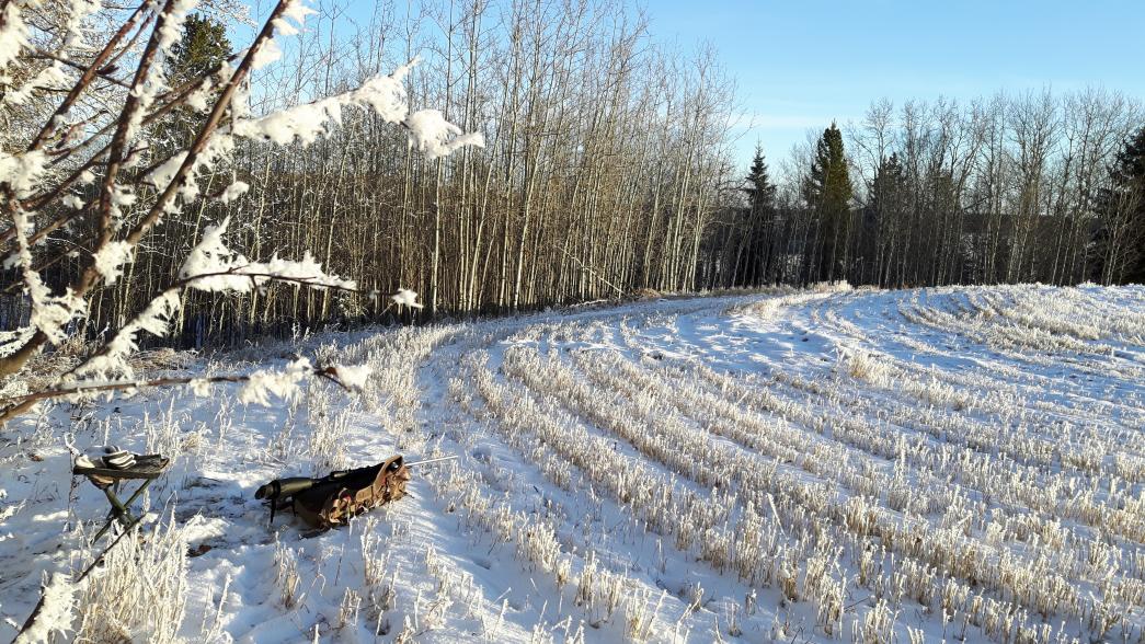 Читал, читал, решил тоже написать. Я тут познакомился через одного знакомого рыбака с фермерами, относительно недалеко от Калгари. Заехал к ним, показали свои поля, приглашали на охоту. Сказали , что выращивают зерно а олени его жрут, приезжай говорят, а то они тут как крысы бегают. Ну, думаю, надо помочь хорошим людям )). Взял пару друзей и поехал. Земли у них разбиты на 4 части, так что каждый сел на своем куске. Мой участок шел плоско от дороги до середины поля, а затем начинал понижаться к лесу с перепадом высот метров 6.