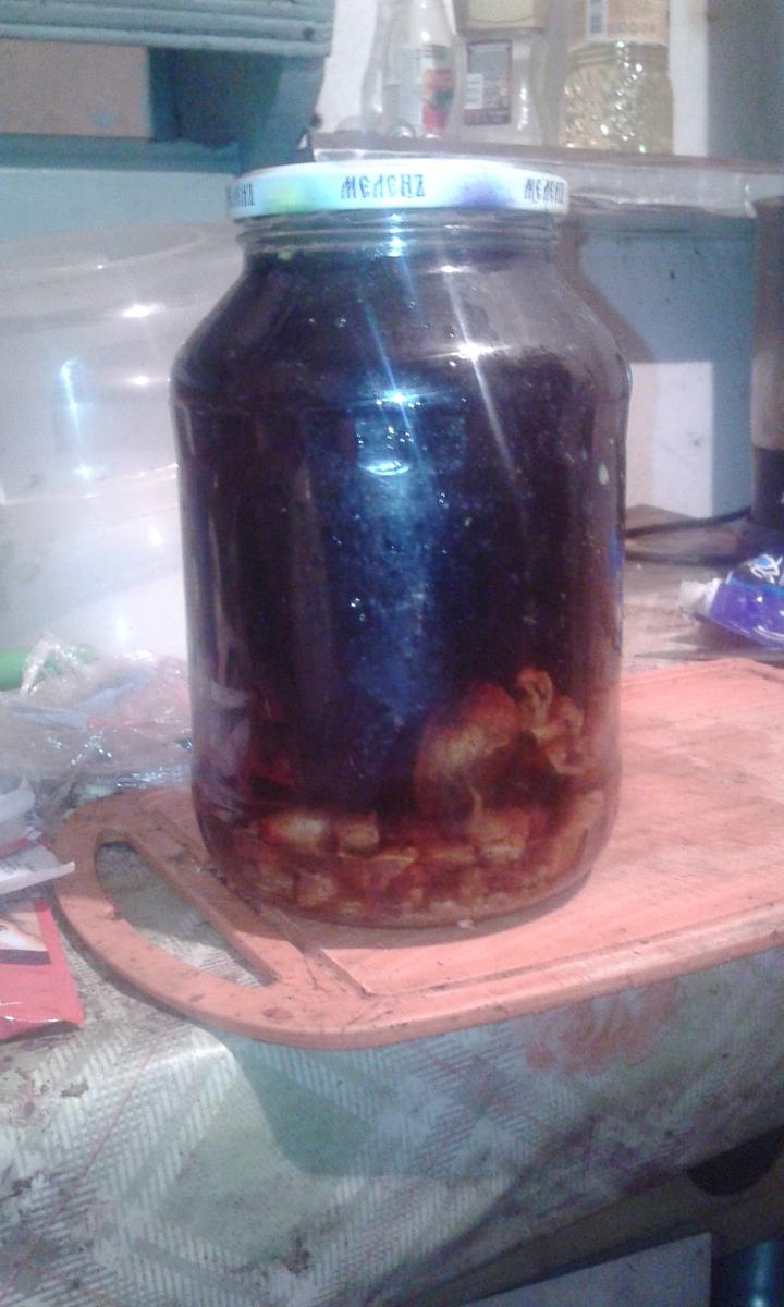 По просьбе трудящихся- настойка "из бобра"... крепость 96℅ выдержка 3 года ( или 4 уже, не помню) концентрированная до безобразия ( на фото видно сколько в банке самой струи) цена видится 2000 за пол-литра..