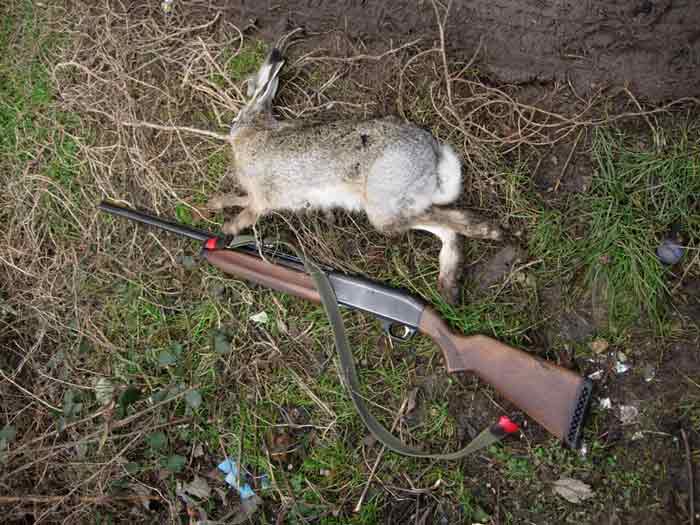 Так и случилось. Поле, которое утром было проигнорировано ввиду того, что пахота показалась молодой (недели три), сейчас было рассмотрено получше. Да и выбор был невелик : или топать по дорожке к дому, или продрать таки последнее поле, сделать последнюю потугу. Папу уговорил быстро. Зашли, двинулись. ОН поднялся метров через 70, можно сказать сразу. Вскидка, поводка, небольшое упреждение... Время остановилось, видно движение шкуры и мышц под ней при кажом прыжке... Перед выстрелом успел крикнуть заветное ГОП!!!!, на случай, если папа зайца не видит. 2 выстрела слились в один. Мне пришлось стрелять в левый бок в угон, метров 45, отец стрелял ровно в угон, метров 30. Такие он не промахивается. Заяц взметнулся, кувыркнулся, прополз метров 15 и отошел. Интересно, кто попал? Чья добыча? Вскрытие покажет.