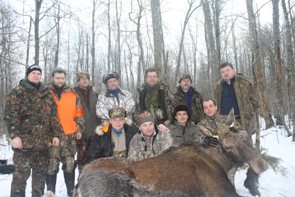 В ходе обсуждения с командой и егерями было принято решение, что на второй день конечно же надо попробовать добрать раненого зверя, а не устраивать более легкие новые загоны. К сожалению не все охотники смогли остаться на вскр., поэтому было принято решение, что один егерь пойдет тропить по следам с точки, где мы бросили след в субботу, а все остальные охотники и егеря забрасываются вперед по пути следования подранка и выставляются для обрезания зверя. Подход сработал, лось даже не дошел до стрелковой линии, так как потерял очень много крови, был очень ослаблен и его окончательно добрал егерь. С его слов, начиная с места, где мы бросили след в субботу, далее пошли сплошные лежки (он насчитал более 10 шт.) с обильными лужами крови. Ну что сказать, когда я по рации узнал результат, у меня отлегло… И больше всего далее мне хотелось понять, куда же я попал (в ночи обсуждались любые предположения).
