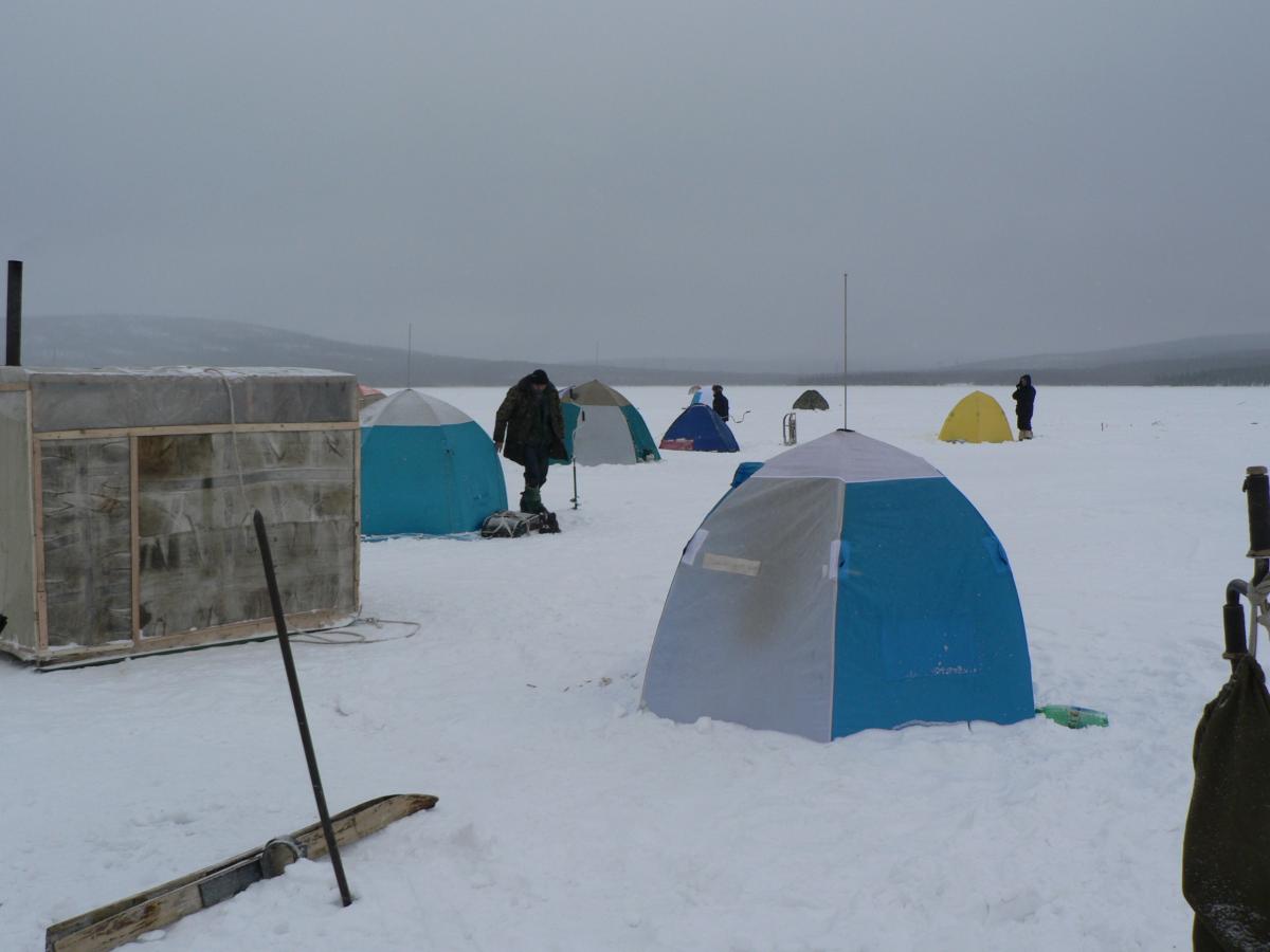 P1000718.jpgНа Кольском на оз. Имандра вот такие домики (с лево на фото) снегоходами на всю зиму на лёд вытаскивают, только в зависимости от перемещения рыбы их перетаскивают. Их много там , просто не помню где фотки. Внутри по бокам 2 лежака , печка на дровах, столик. По центру на полу нет пару досок , для лунок. Каркас и обтягивает кто чем , фанера , банеры и т.д.