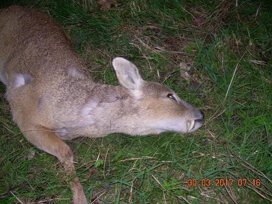 24 марта с утра выехал в Бардеёв, на охоту на муфлона. Это 450 км от Братиславы на восток, почти у польской границы. Владелец охотугодий уверял, что там у него есть отличные муфлоны с рогами по 90 и более см. Около 15 я был уже на месте, перекусили и выехали на охоту. Добрались до опушки леса уже в пятом часу вечера и забрались на лобаз. Минут через 40 стали появляться звери, олени, даниэлы, муфлоны. В общей сложности набежало голов 70-80, муфлонов было всего 8. Из них только два были с рогами см. по 80, остальные молодняк. Достойных рогачей не было. Хозяин мне пояснил, что оленей и даниэлов они вообще не стрелют в этом охотугодье, только муфлонов, поэтому они практически не боятся людей. Оно и было заметно, муфлоны постоянно смотрели на лобаз и держались от него подальше, а олени и даниэлы вообще не обращали на него внимания. Даже когда шеф закашлялся, отскочили только муфлоны, а остальные спокойно паслись. Просидели почти до самой темноты, но длинорогие бараны так и не появились. Решил стрельнуть самого крупного. И вот когда я стал прицеливаться, мой спутник неловко повернулся и задел локтем стену лобаза. Это напугало муфлонов и они стали отходить в лес. Я тихонечко посвистел, это заинтересовало их и они остановились. Я поймал в перекрестье лопатку муфлона и увидел что сзади идёт данэлка. Стрелять нельзя, пуля пробьёт муфлона и ранит или убьёт даниэлку. Надо ждать. Она остановилась за ним. Муфлон постоял ещё секунд 30-40 и пошёл к лесу, а она рядом с ним. Так она спасла жизнь муфлону.