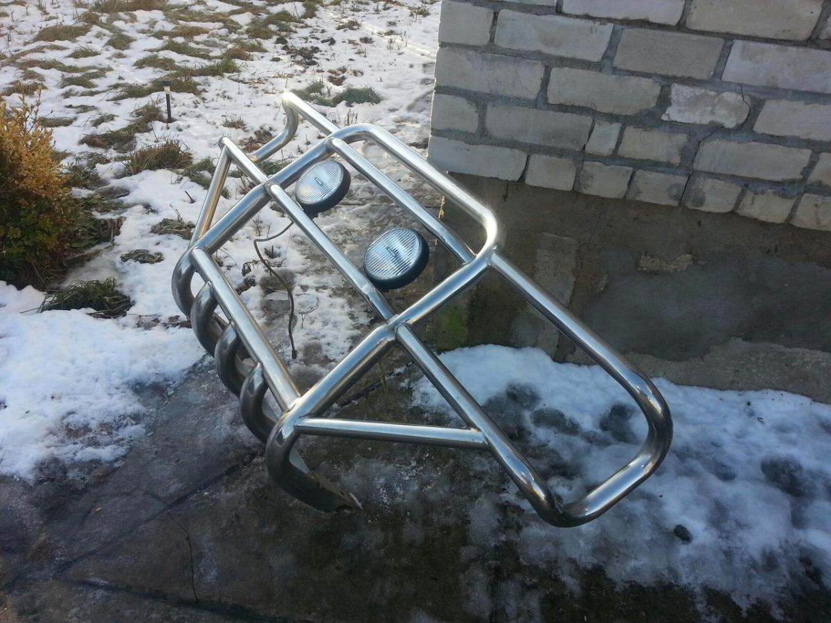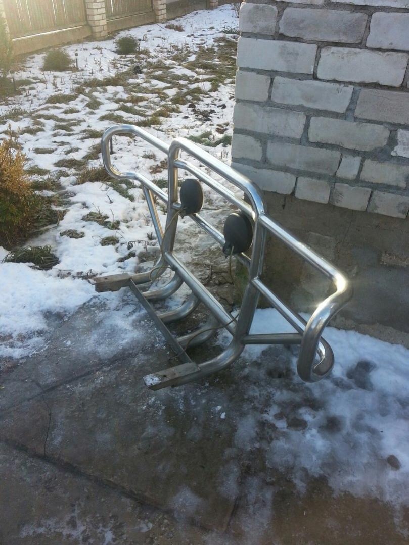 Продам кенгурятник для внедорожника.Лежит без дела.Размер 1730 на 750 мм.Вес 27 кг. Я так понимаю он самодельный из нержавейки,но сделан не плохо.Стоял на OPEL MONTEREY.Думаю на УАЗ самое то.На нем две противотуманные фары ring galogen.Находится Псковская обл. г Гдов.Цена 5000р.Тел 89210048980 Костя.