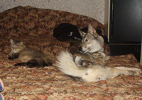 Поначалу, как взял щена, все жалко было, типа замерзнет зверушка (ОДНА, БЕЗ МАМКИ!) И вот, как только эта "попа не мытая"подросла и ей стало по силам забираться на кровать (читай - диван) она стала устраиваться в ногах. ХА!!! Это поначалу в ногах, а потом, когда вскоре появилась вторая, и они обе... как бы это сказать. В общем я там оказался уже как бы и лишним. Спят, играют, по голове ночью бегают!! Стал гонять, но у них тут же возник вопрос, прямо в глазах читалось - Как же так любимый хозяин? Вчера было можно, а сегодня!!!!!