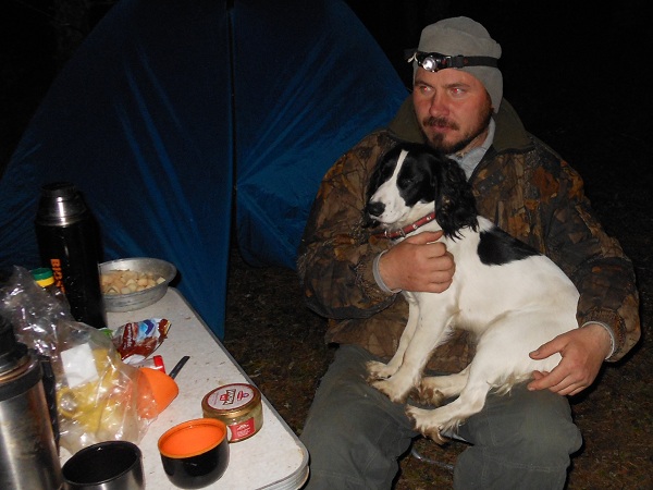 Если попадешь в комариный период, то собаку волей-неволей пускаешь в палатку, так как её просто убивает гнус и она теряет силы на глазах.