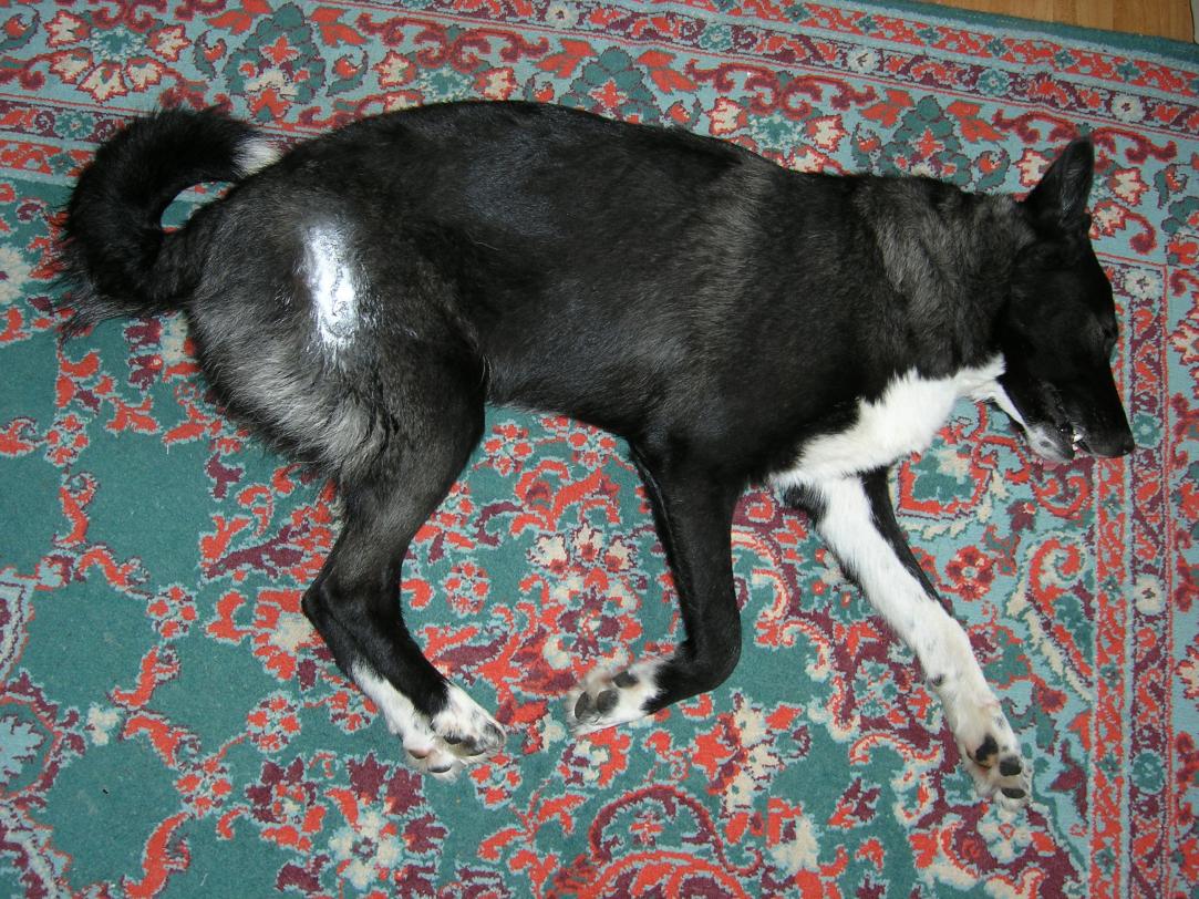 Нету у нас документов, в наших пинатах этим ни кто не озадачивается, как выяснилось напрасно...Спасибо за ответ! Мне обьяснили что без доков не размножают. Ну не та категория, беспородные. Кровь портится .... Я в это ранее не вникал вообще, для меня главное чтоб собака была лайка и рабочая...А бумажку мне выпишут какую угодно за разумные деньги.. страна у нас сейчас такая... Но у вас все серьезно! это ваша жизнь, работа... Наверно я просто по незнанию не в ту дверь стукнулся))! Я ж как думаю, моя лая за два с половиной года прошла за сотню реальных охот, показала своей самоотверженной работой свои колосальные на мой взгляд способности ( это не пиар ! я много собак видел ) и я решил что она достойна потомства и оставлю себе от неё девочку уж больно она у меня редкая охотница. А оказалось что собака то моя и не собака а брак какой то нет у неё метриков. Приезжал в том году ко мне в гости на охоту друг с Москвы, привез курцхаара (породистого) под вечер тот курц из машины не мог выйти на фотосесию его просто трясло нос в кровь лапы ободраны.. смотреть на собаку больно. А моя мало того что как конфетка так его чуть не загрызла когда он к подранку чужому подошел)) Тогда я впервый раз увидел что такое конкуренция у собак, моя Моля просто из шкуры выворачиваль, вытаскива птицу из самой глубокой хавиры... ни одного запаха ни одого следа ни звука не пропускала... под вечер мне так её жалко было что промахнуться считал просто предательством))) У моего друга была лайка тоже без докоов ну не собака в общем... по одному крику петуха вычисляла где он сидит обходила его и поднимала строго на охотника... а если тот промазывал приходила к нему и пристально смотрела в глаза))) ну а потом переставала на него работать если он не исправлялся)).. А чего я это все пишу.. да просто я знаю что моя лая настоящая охотница и таких как она единицы есть у неё метрики или нет мне не важно я с ней прошел за сотню охот а бумага все стерпит... На фото моя лая лежит после операции ей зашивали лапу после секача. К нам прише друг сына, она услышала что кто то стучит в дверь встала и стала защищать територю но вместо лая она просто громко охала, не было голоса от наркоза. Даже в таком состоянии она не смогла оставить хозяем и свой дом... На выгул не давала себя носить по ступеням, сопротивлялась чтоб не брали на руки)) всегда сама прыгаля в верх и вниз с пятого этажа.. В лесу когда её порвал секач она сама старалась выйти к машине, не давала себя нести, вот такая самоотверженная недособака .P1016185.jpg