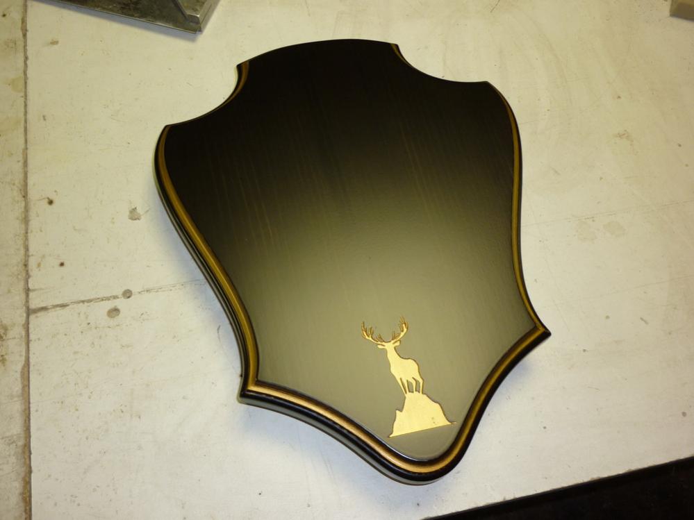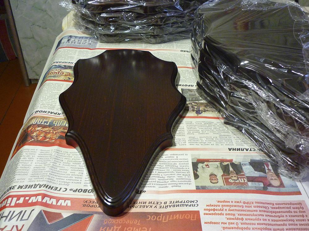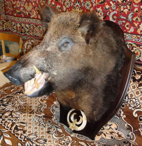 Как-то делал медальон под голову кабана (фото выше), сегодня заказчик-таксидермист скинул фото с прикрепленным трофеем.