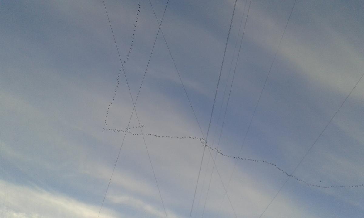 Только что над Копорским большая стая в сторону Эстонии. Высоко.