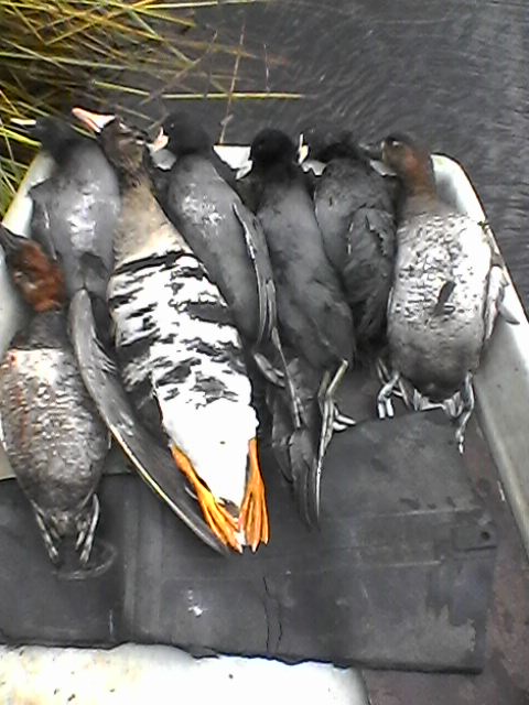 Провели с товарищем всю субботу на Ладоге в Кировском районе. Охотились на утку с чучелами, время от времени я играл на гусином манке. В результате налетели по очереди две одиночки. Одного взяли. Утка практически не летала. В воскресенье целый день на даче в Кировском районе провозился - в небе тишина. Утка практически не летала. Всех добывших с полем!