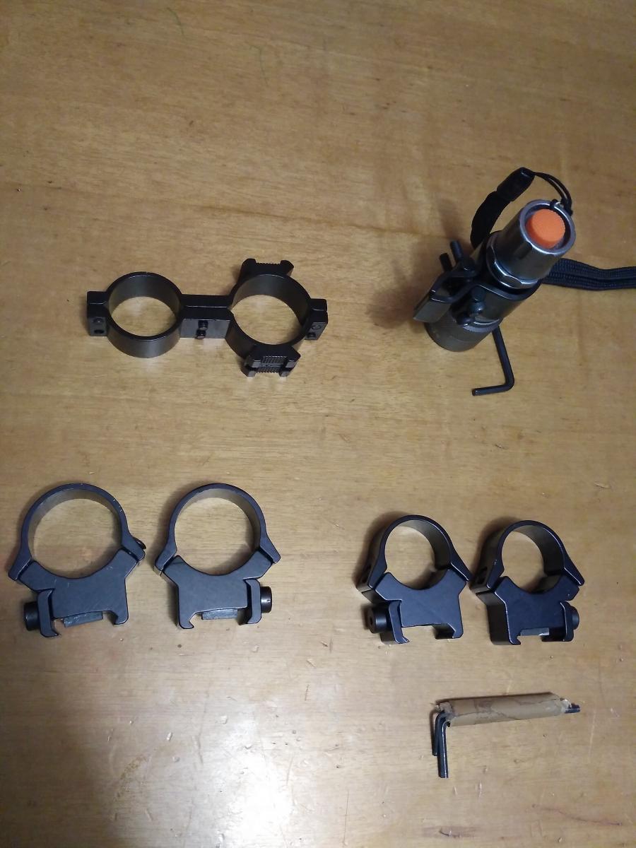3. Кольца 30мм сплав, на вивер, стояли на пневме. Пара винтов сорвана, откручивались звездочкой, производитель похоже на Warne. Цена 500р.