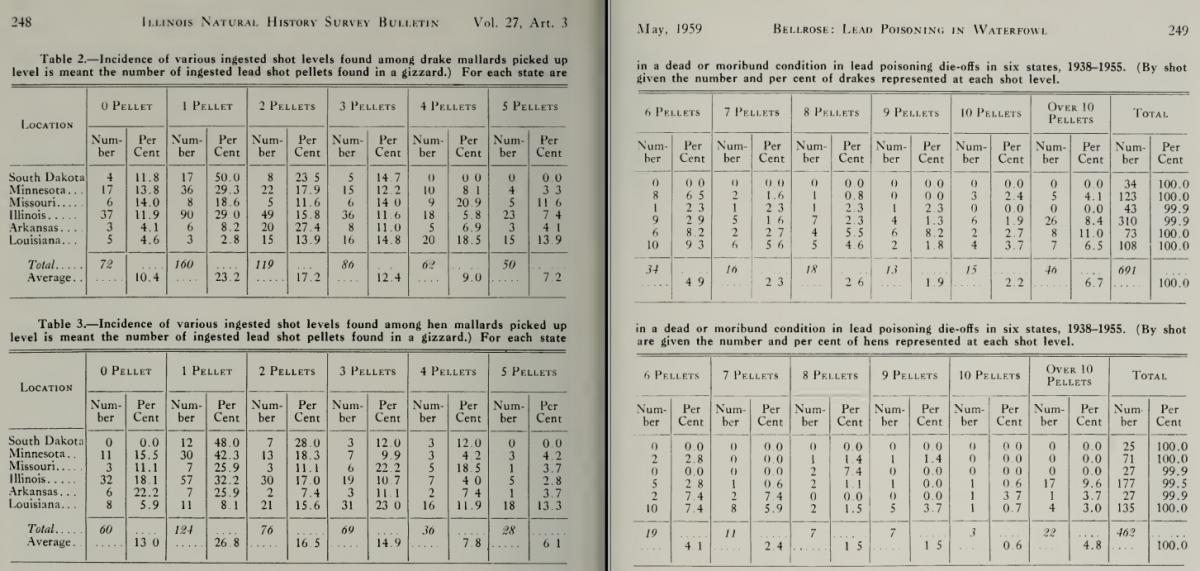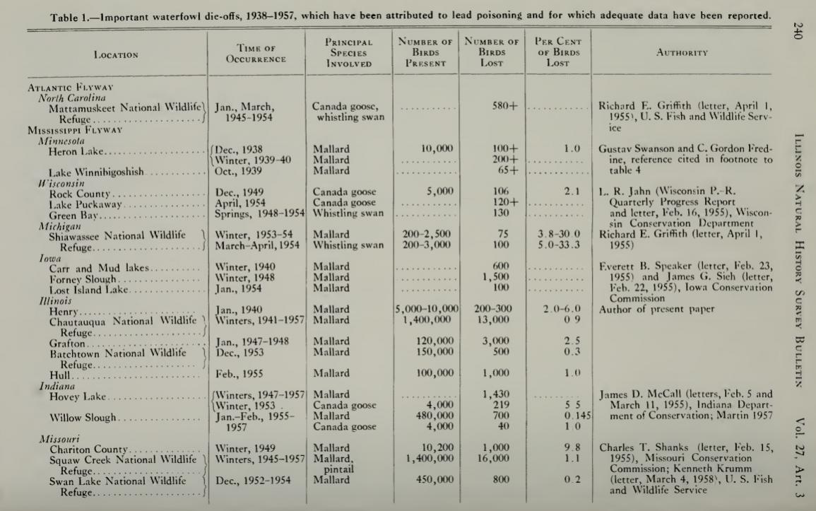 Ну-ну. Это Валерий, который Михалыч, из Алтайского края не знает. Потому что ему тут писали-писали, давали ссылки, он их не читал, но имеет своё мнение. Если ты спорить начинаешь, то будь добр сначала почитать аргументы. Я ссылку на книгу давал? Давал. Ты её скачал? Нет. Прочитал? Нет. Тебе надо чтобы приготовили, в тарелку положили, потом разжевали и в рот положили. Ну держи две таблицы. Тебе здесь колонка Lost birds для изучения. Там количество сдохших птиц. Mallard- кряква, pin-tail- шилохвость, blue- snow gees - Белые гуси, Canada Goose - канадская казарка
