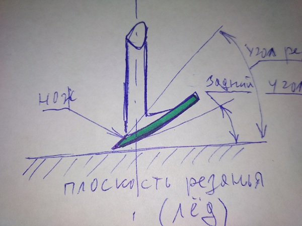Сделал пару снимков, надеюсь так будет понятнее. Основная проблема Моры, с полукруглыми ножами, это очень малый задний угол, близкий к нулю градусов. Из-за чего ножи фактически ложатся задней плоскостью на плоскость резания и просто скользят по льду, не цепляя режущей кромкой. Отгибая площадки ножей как на фото, мы устраняем эту проблему, ножи опираются на лёд РК а не задней плоскостью.что гнуть и куда