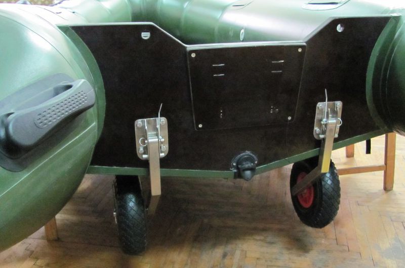 По желанию заказчиков будут установлены транцевые колеса как на надувастики. Они не дорогие и намного приятней на них будет катится лодка.