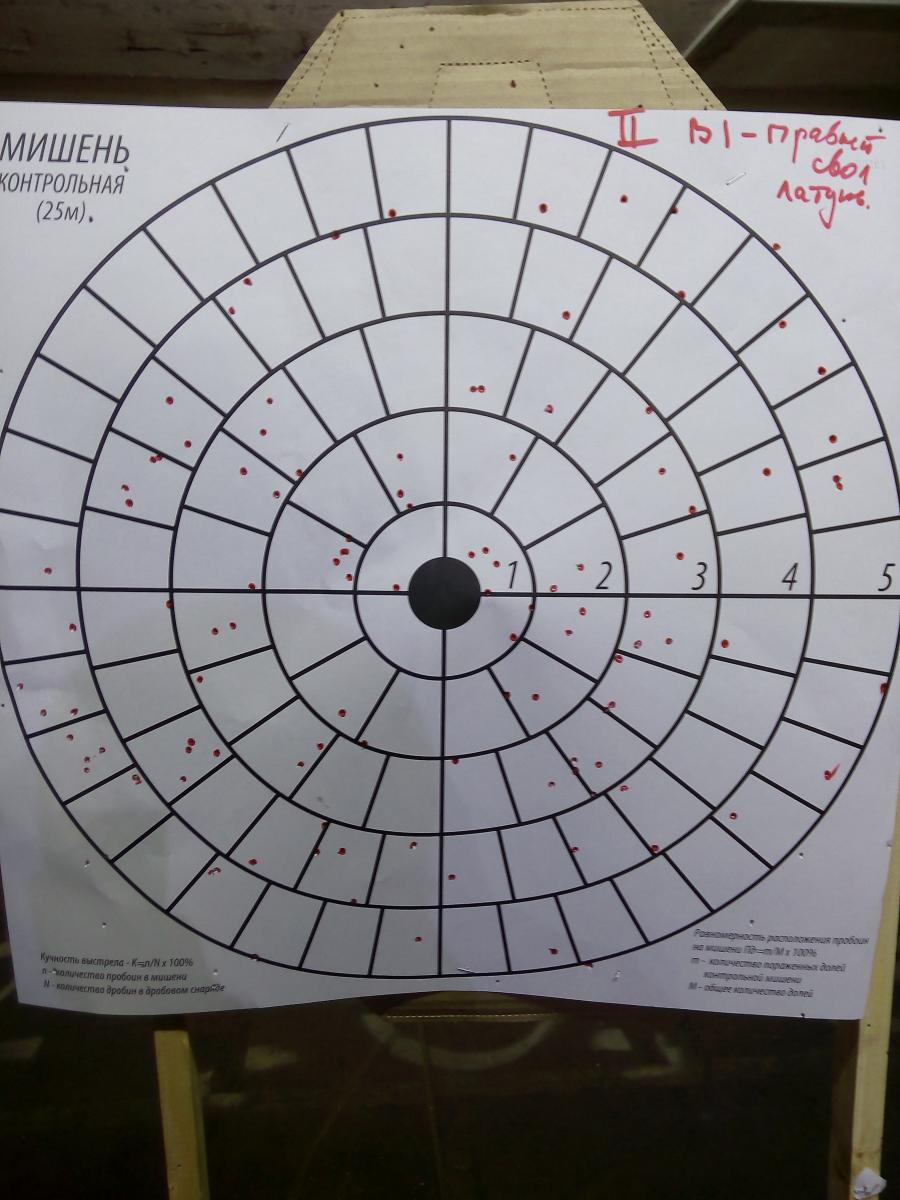 Не, судя по всему Дмитрий, что вывесил мишень, предварительно стрельнув по ней из ДВУХ стволов, вообще не в курсе, как проверяется кучность и равномерность осыпи :)