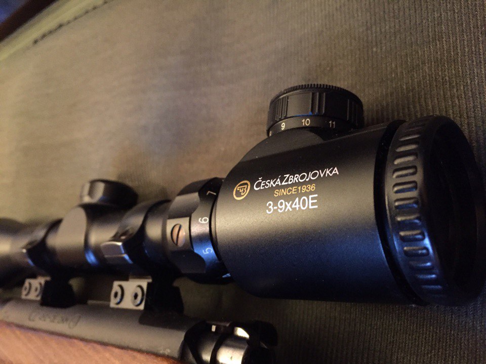 В комплект входит:прицел CeskaZbrojovka 3-9x40E,чехол,ремень и 3 пачки патронов.