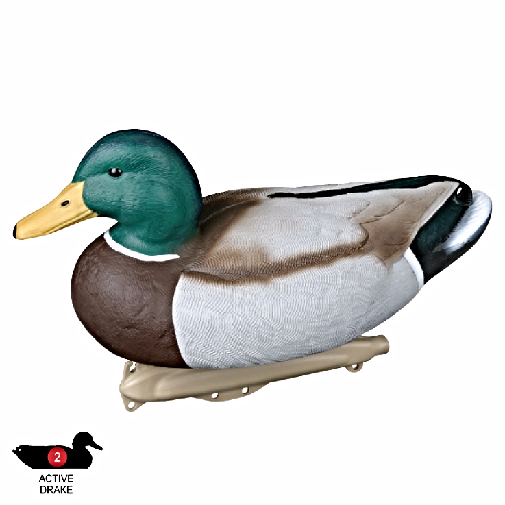 В комплект из 6 чучел входят 4 селезня (кормящийся, отдыхающий и 2 плавающих), а также 2 утки (плавающая и отдыхающая) Приманки различаются положением головы и длиной шеи, что придает стае реалистичность. Корпуса из несминаемого легкого пластика, матовая детализированная окраска с эффектом UVizion.