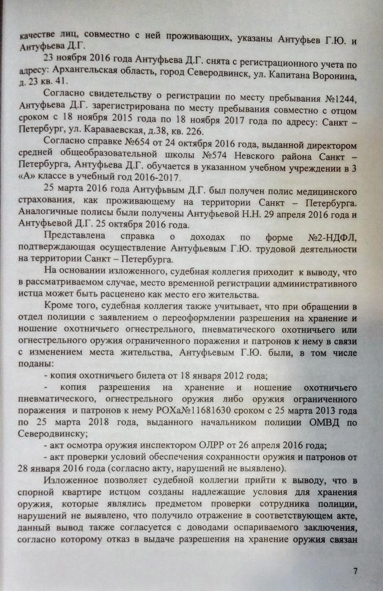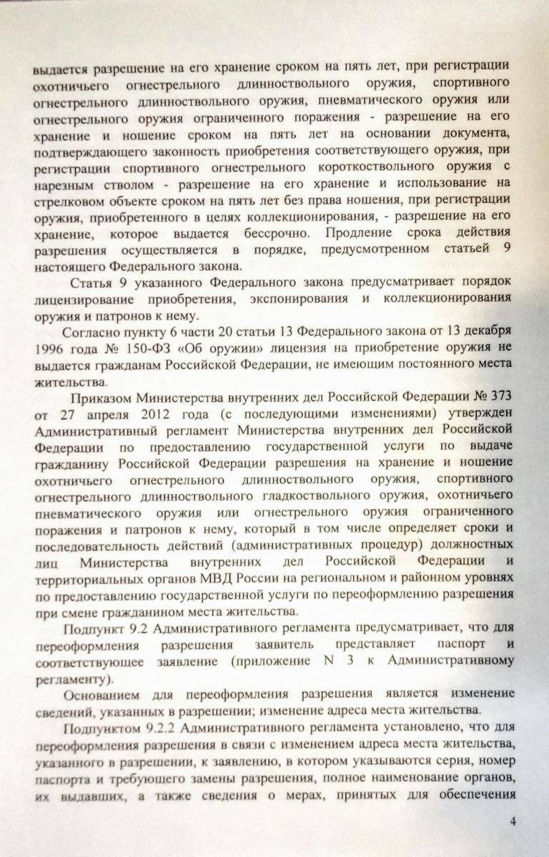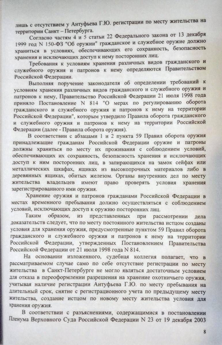 Решение городского суда по постановке оружия на учёт по регистрации по месту пребывания