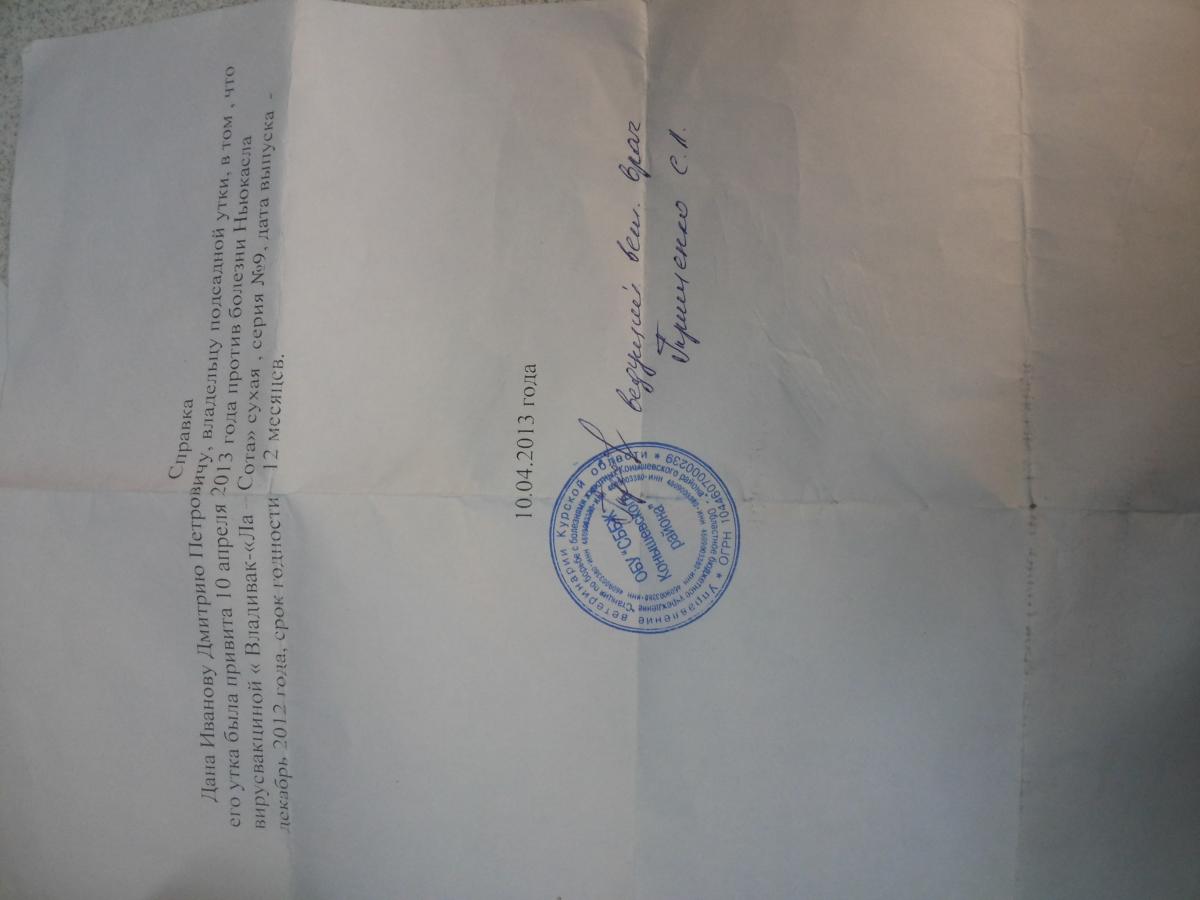 и какой документ может подтвердить что твои утки привиты, и ты не "разнощик" птичьего гриппа например...