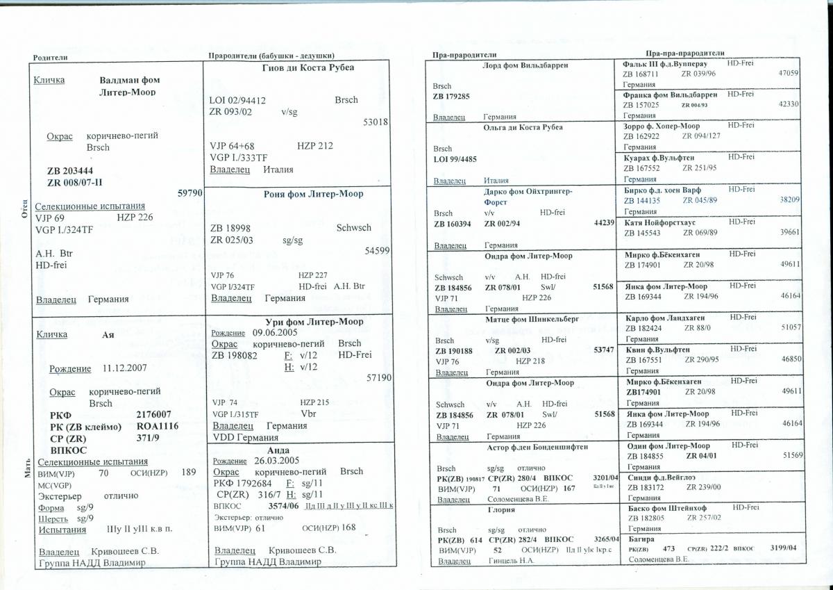 5. Мать: BRISS vom HONEVERG, владелец Кривошеев С.В. (Москва)