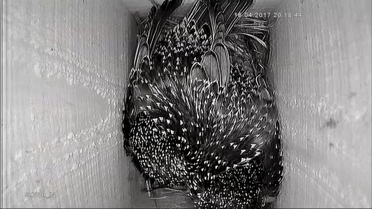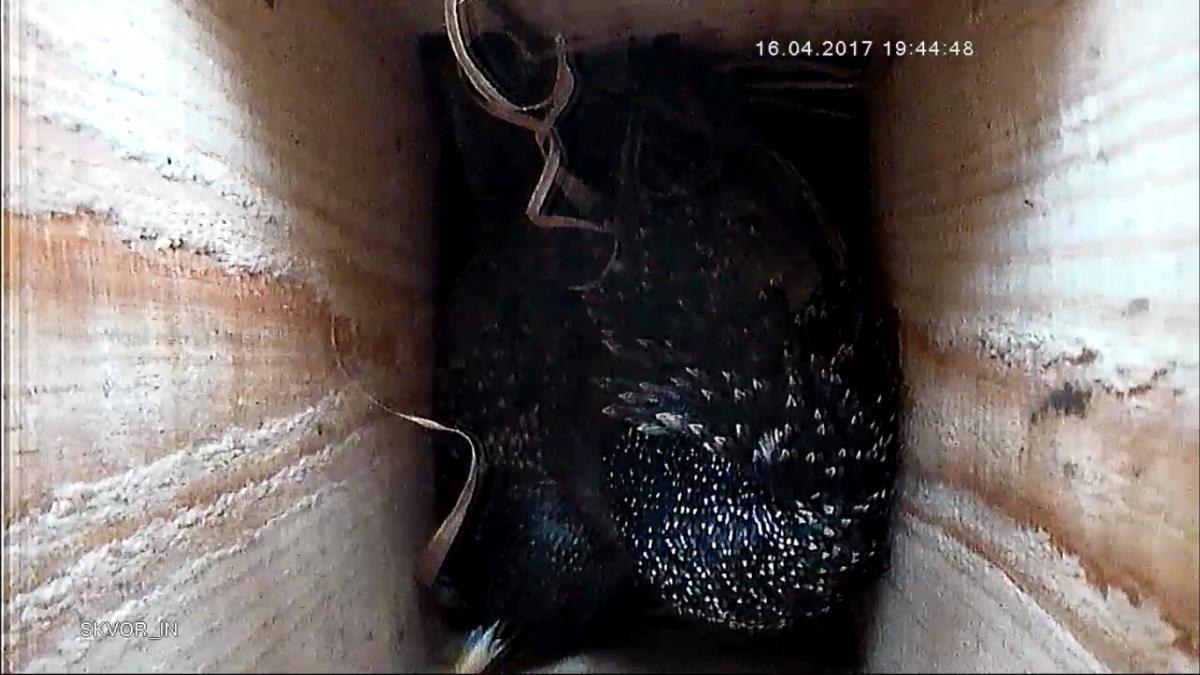 Удивляюсь, тоже, но ведь действительно, как то влазят. Птенцов бы не подавили, когда те появятся... Папашу то явно выселят, надеюсь)).Спят вдвоем, вроде влазят