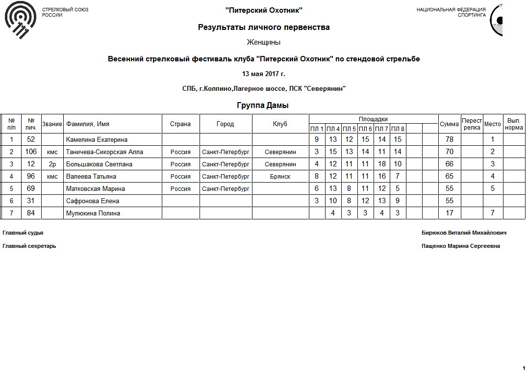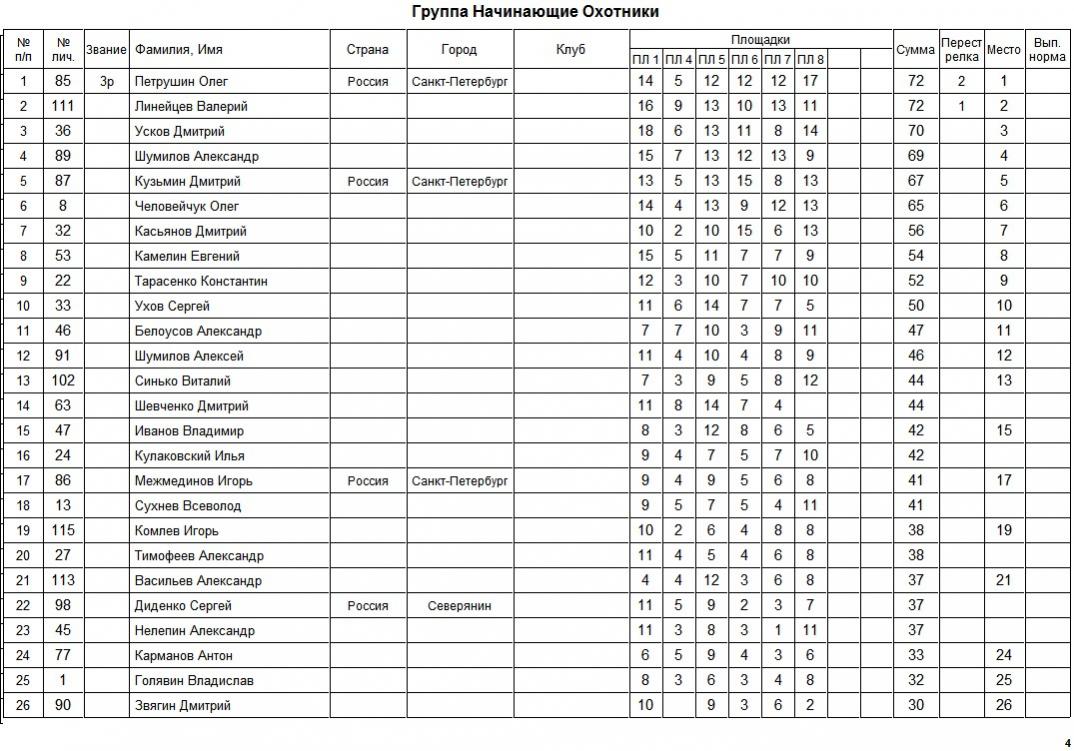 Виталик в группе Дамы опечатка -скорей всего 1 и 4 площадка(вертикальный столбец напутан)-ибо в графах на 4 площадке результаты от 13 и выше а там всего было 10 мишеней:ag: