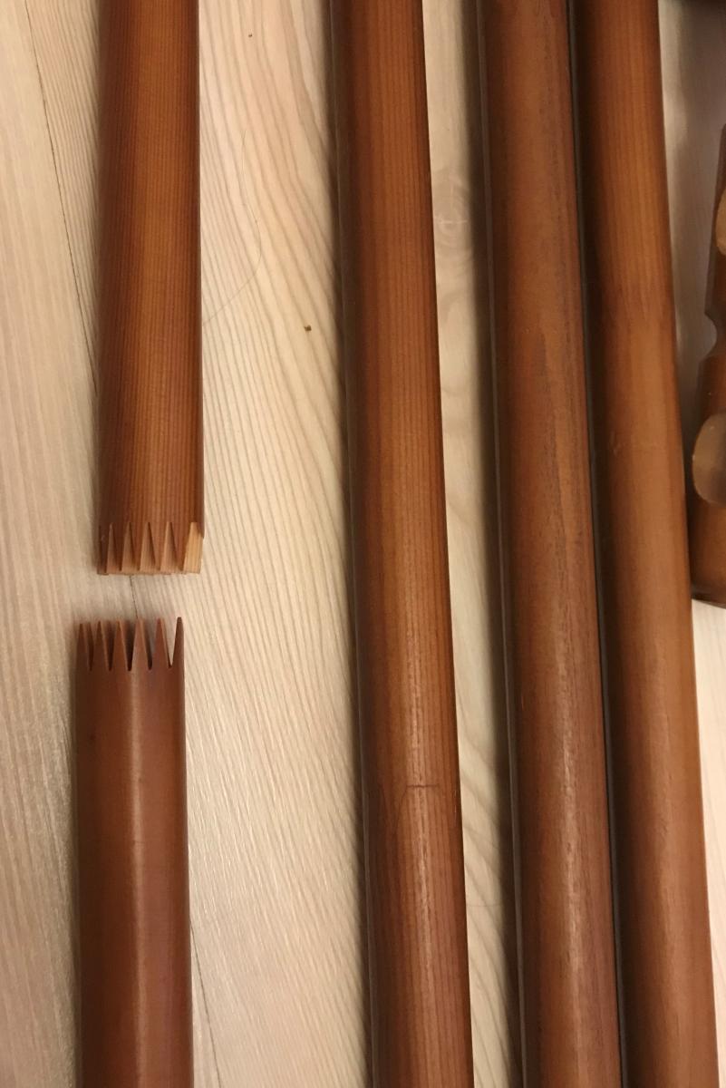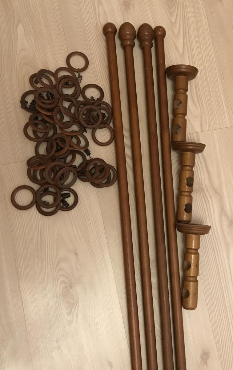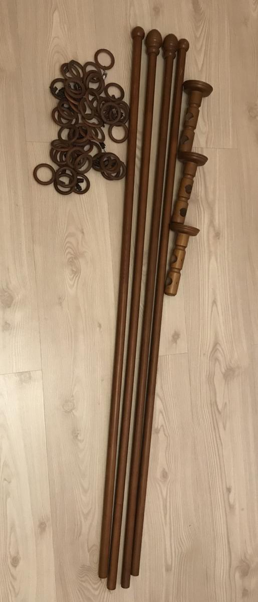 Деревянная гардина, двойная. Может на дачу кому. Есть маленькая проблема, но легко исправляемая, расползлась в месте стыковки, легко лечится клеем.