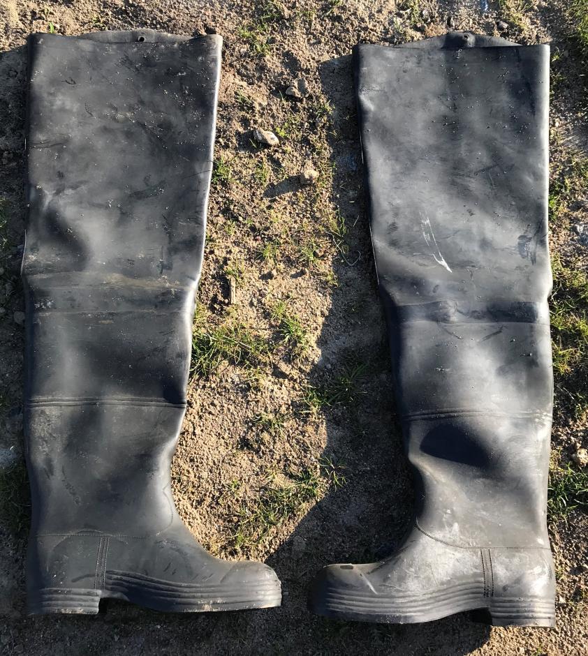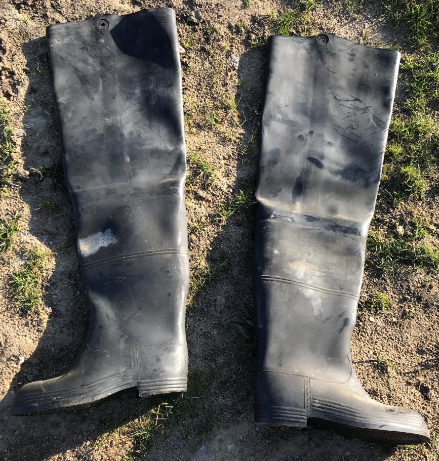 Резиновые сапоги, болотные. С маленьким дефектом, в месте сварки чуть лопнули, есть маленькая дырочка. На фото видно. Может кто с руками, сам запаяет или заклеет. Размер вроде 44, или брал чуть больше, 45, что б с теплым носком носить. В общем 44-45. Можно будет померить.