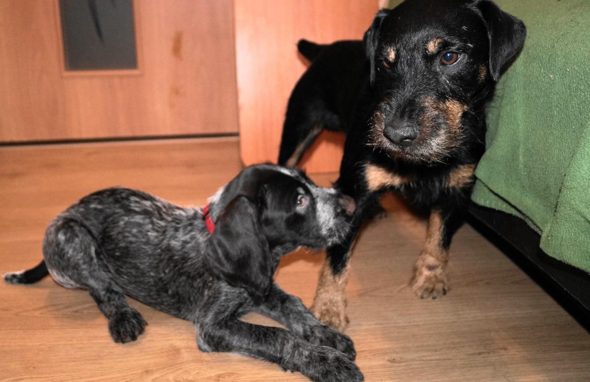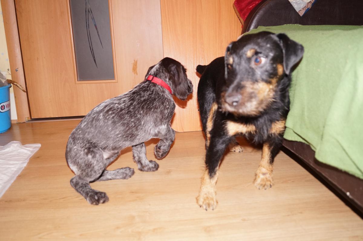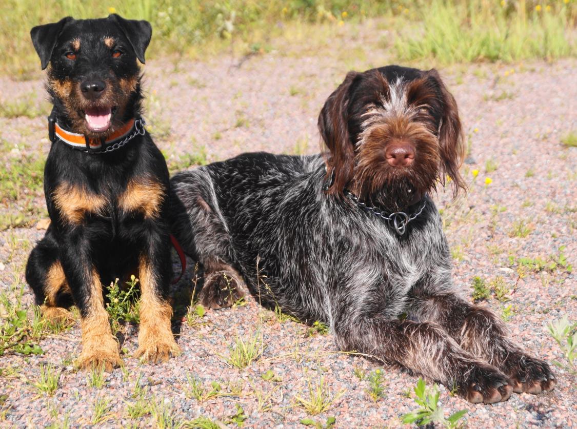 Немецкие Ягдтерьеры Икар и Рики и дратхаар Артемидаа