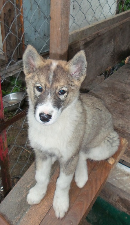 Кличка: Царская удача (Уда), вес на 2 м-ца -6,1кг, высота в холке-39см, обхват груди-48см, знает базовые команды. Щенок воспитывается в природных условиях, достаточно гуляет, плавает в озере. Клеймо, прививки, дегильминты.