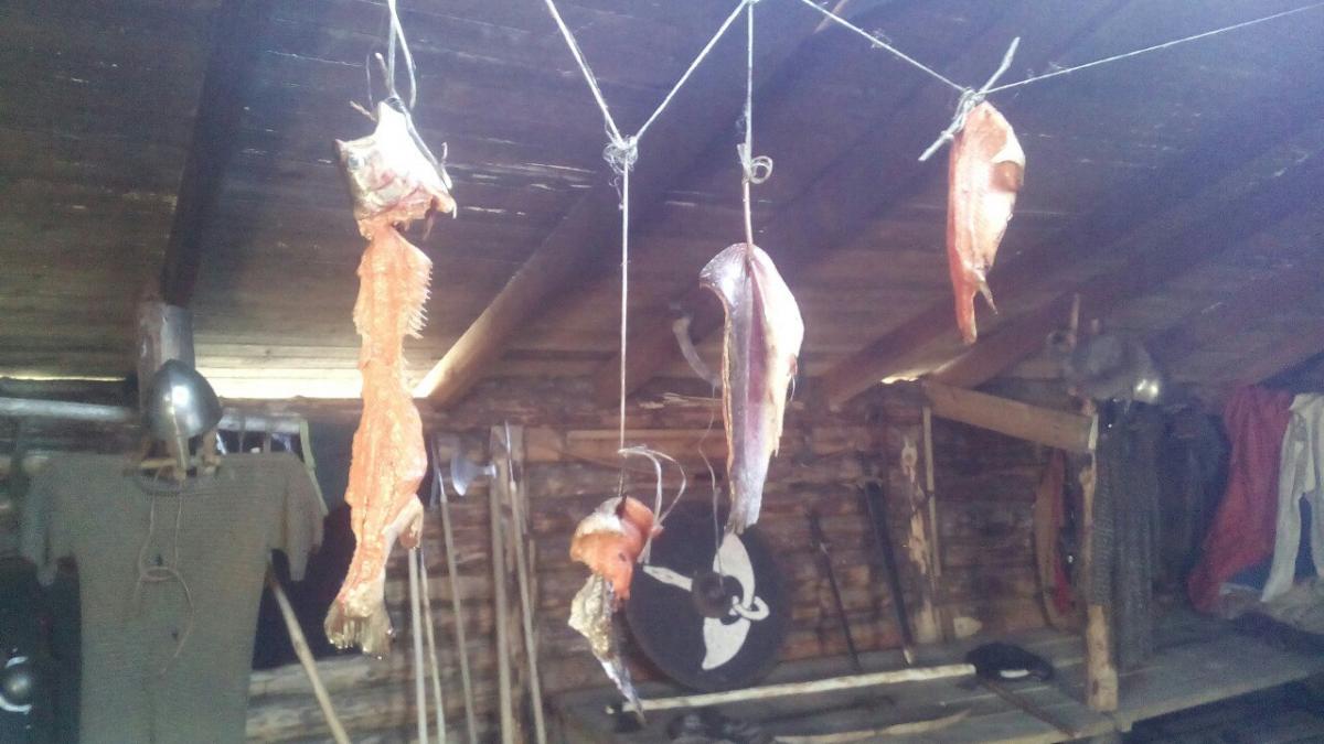 На острове, где мы жили - Бьоркагард, деревня викингов. В ней и жили. Условия полевые, только что крыша над головой и дымный очаг внутри.