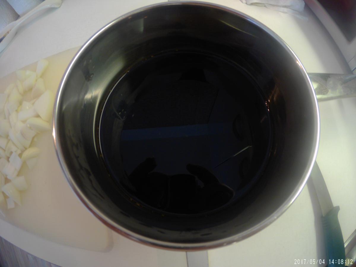 Пока мясо томится, мелко шенкую чеснок, крупно лук, развожу соевый соус чуть водой и подготавливаю специи.