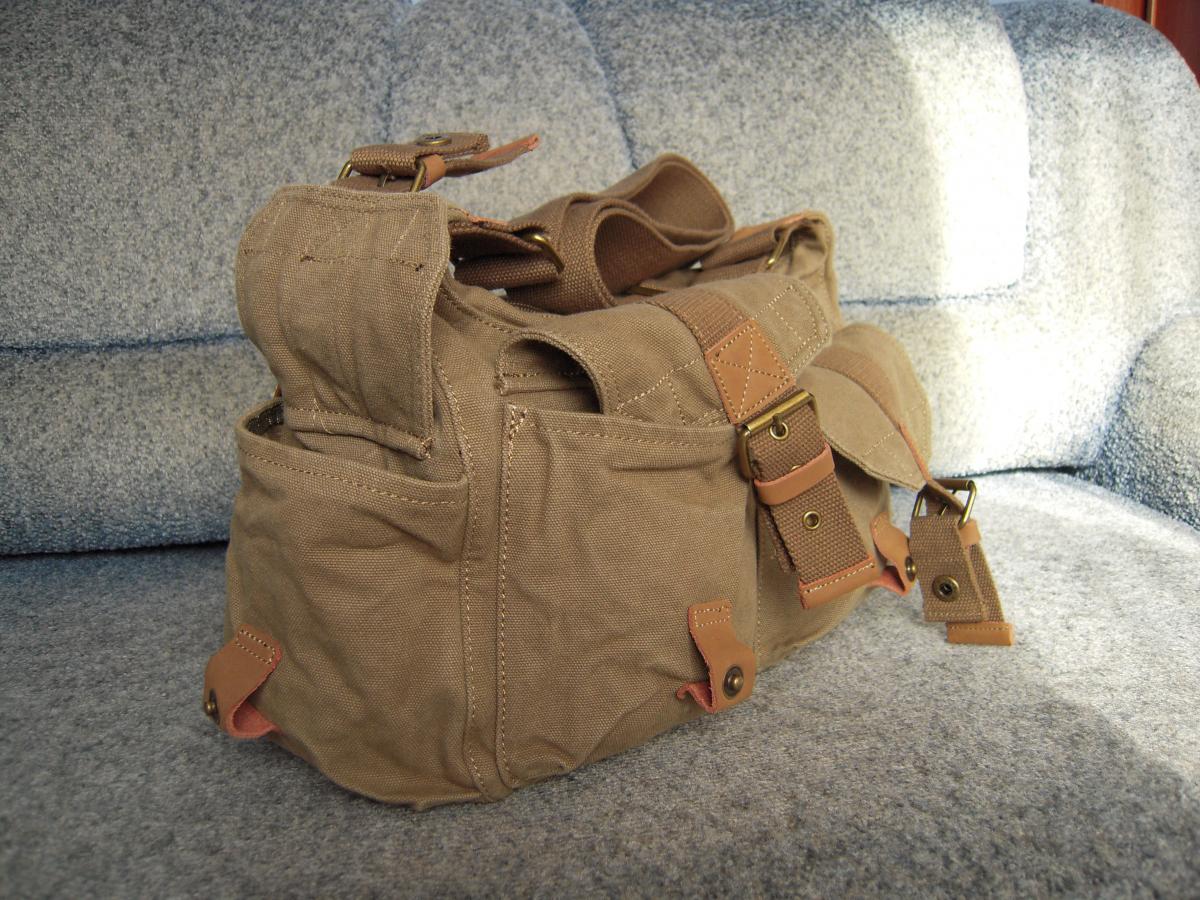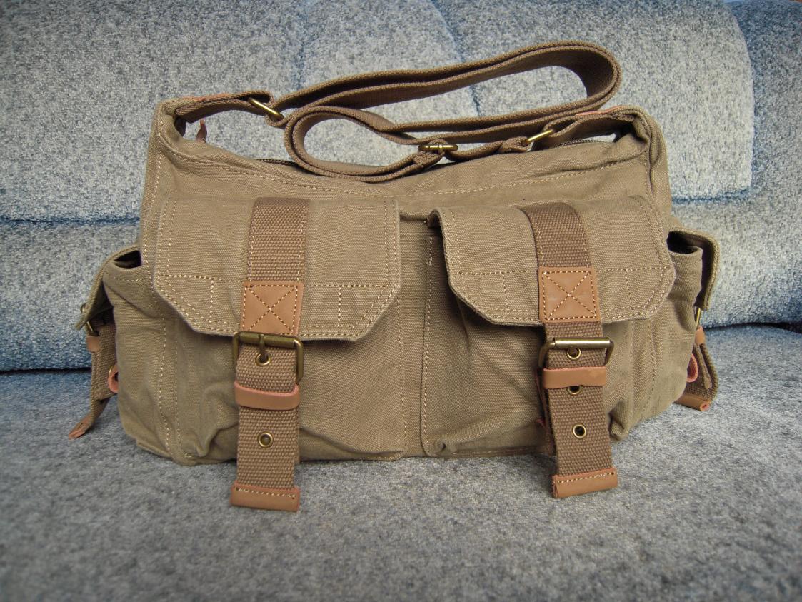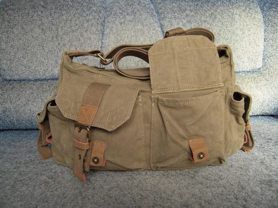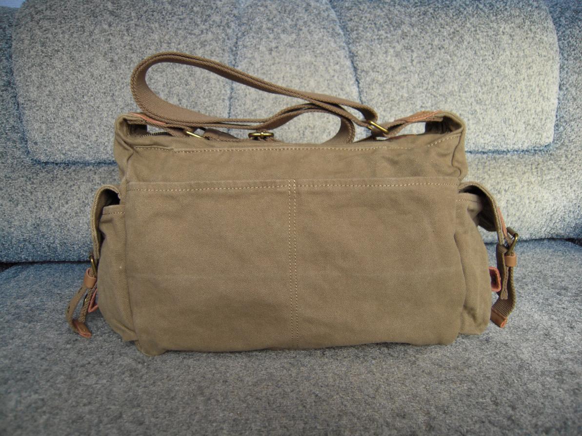 Продаю новые холщовые сумки коричнево-зелёного цвета. Холст плотный, из хлопка. 7 карманов: 6 снаружи, 1 внутри. Длина ремня регулируется, 69-130 см.