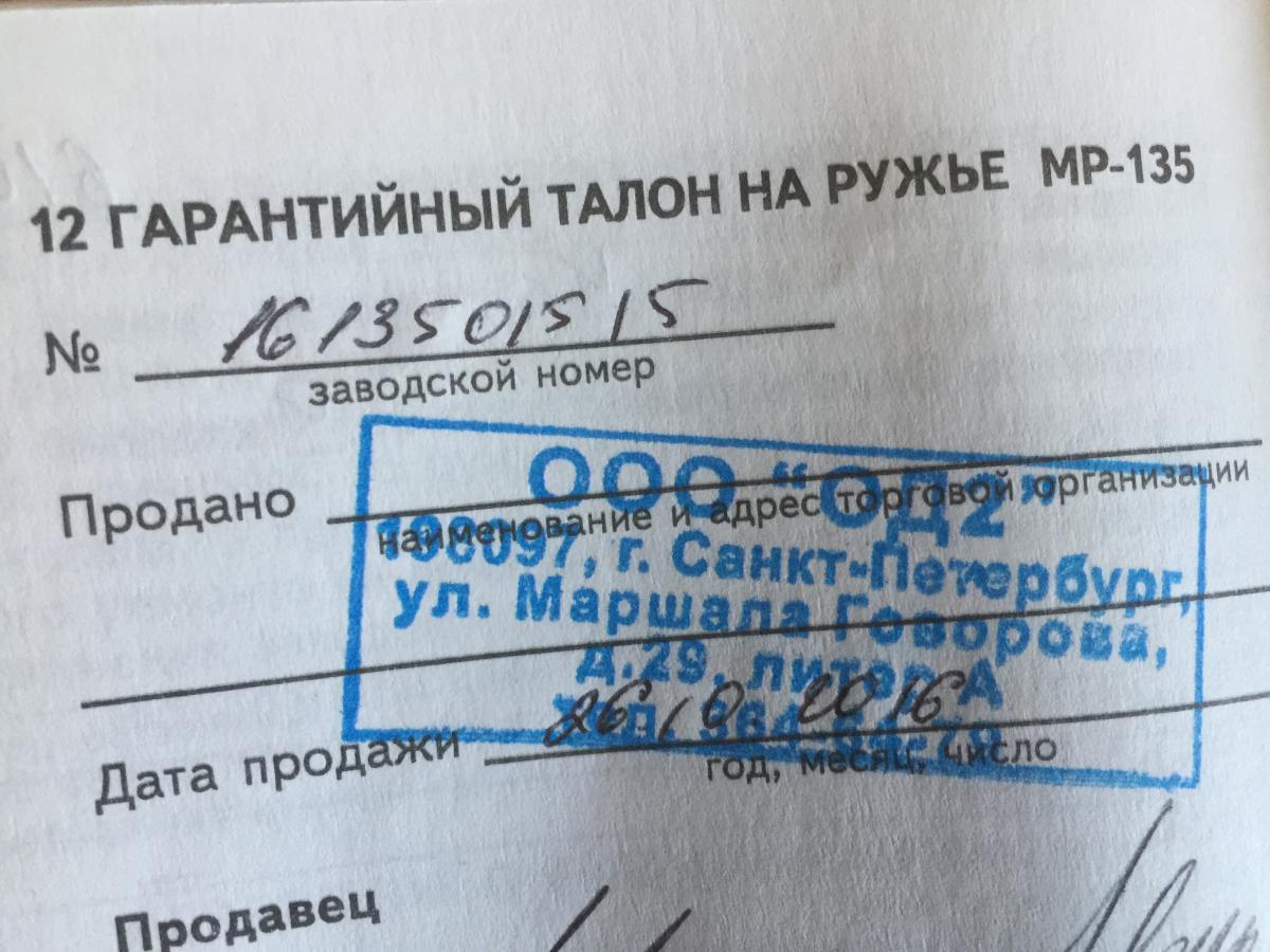 1. Модель ружья: МР-135