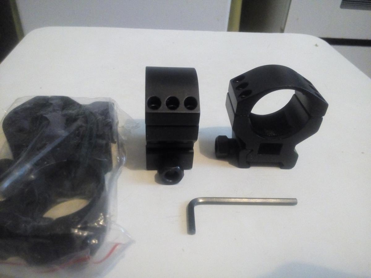 Кольца по виду хорошие, по 6 болтов, широкие, окошко позволяет использовать и открытые прицельные.