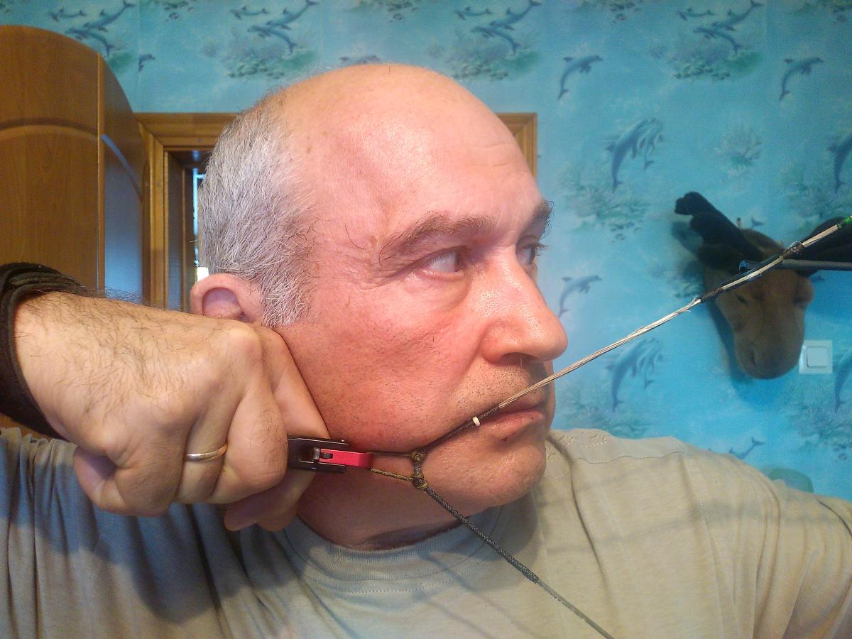 Растянулся, попросил жену отметить место, где тетива касается края рта. Дальше - дело техники. Завязал двойной узелок из резинки, капнул на него клеем момент.