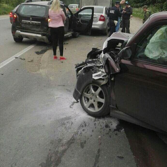 "Ксюш попали в сильную аварию на новомосковском шоссе в 5 км от Тулы. Я виновник, пострадавших нет 2 машины под списание. Собаки в шоке убежали в нвправлении Тулы. Шлейки с адресниками остались в машине, возможно травмированы, объяви поиск"