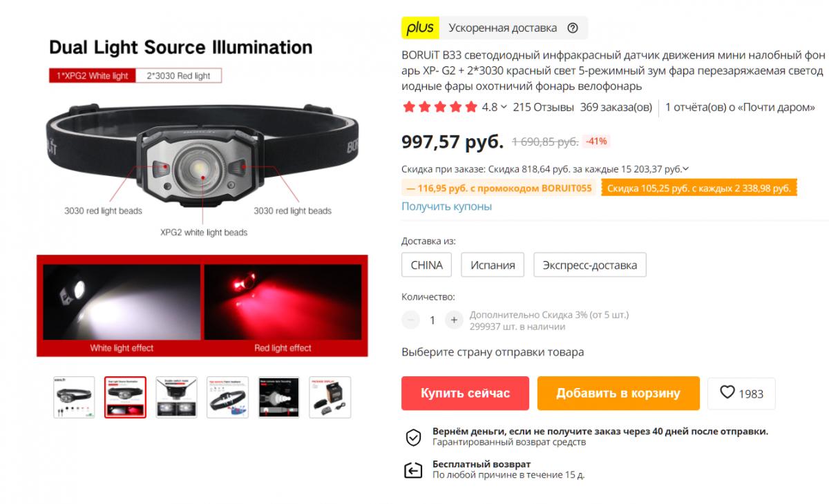А есть ли у кого положительный опыт эксплуатации налобного фонаря с Али?