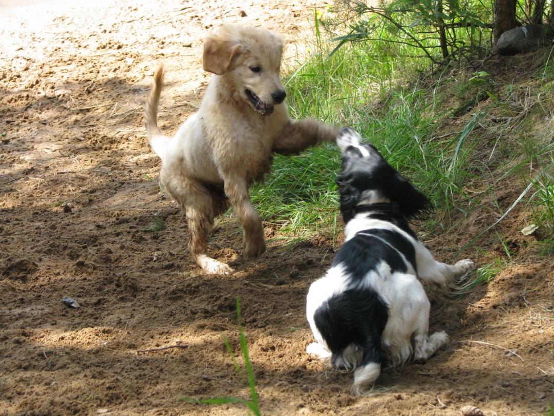 Щенки - крепкие, с отличным костяком и нарядной шерстью, жизнерадостные и любопытные. Не боятся пера и меха.