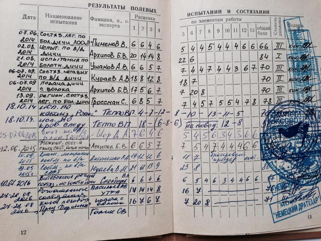10. Все дипломы за рабочие качества с указанием по виду дичи: в/п-1д-3; б/д-1д-2; кровяной след-1д-3