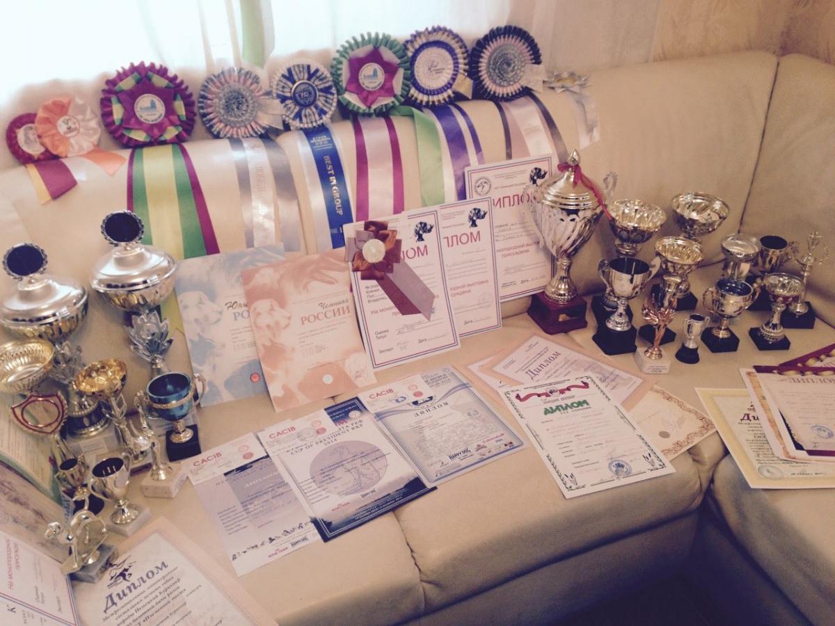 8. Оценка экстерьера: отлично, юный чемпион России; юный чемпион клуба НКП; чемпион России РКФ; чемпион РКФ; 3-CACIB