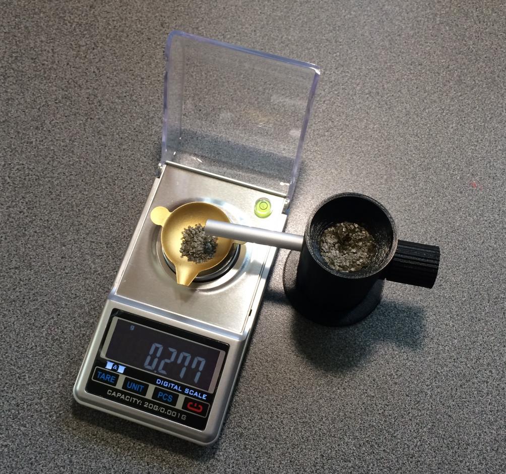 При использовании пороха Сокол, 1 оборот примерно 0,01г.
