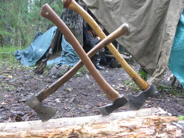 Детали топора,создающие различия,о которых говорит Ларс Миттинг-это длина рубящей части,ее загиб(есть или нет)Расстояние от обуха до режущей части,вид заточки,строй топорища,есть или нет крючок-бобышка-грибок.Подобран топор по весу и длине топорища к вашим параметрам.И вообще тот ли топор вы взяли в лес.И соответствует ли он задачам,которые вы перед ним поставили......Ну вот этим я и занимаюсь-подгонкой топора под человека и задачи.Отличия-топор хусварна имеет прямое лезвие,без всякого изгиба и рубит-очень оно короткое,и хорошо соотносится с весом и длинной рукояти.Но для меня не удобно-минус короткого лезвия приходится наносить лишние удары при увеличении диаметра дерева-в выборе рулят резоны-попади по ветке коротким лезвием на топоре с длинной рукоятью....