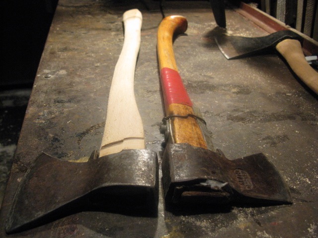 Подбором древесины на сопке переболел очень быстро,еще в молодости.Но отношусь положительно,увлечен человек-почему нет.Как и к кованной голове.В топорах рулит не то что бесконечно перетирается на топорных сайтах.Самый наглядный случай-подобрал деревяшку и сделал излишне толстое топорище.Ну и потерял 20 процентов производительности и 50 эргономики.Зачем старался-то.Бобышка должна быть и должна быть по руке.Какая?Грубо-крючок,а не просто плавный загиб-имхо.Должен топор висеть-угол очень важен-форма нет.Вклейка используется-вплоть до изготовления из пластика,на сделанном топоре не заметна вообще.Можно сделать цельную,из кирочной рукояти перевернув.