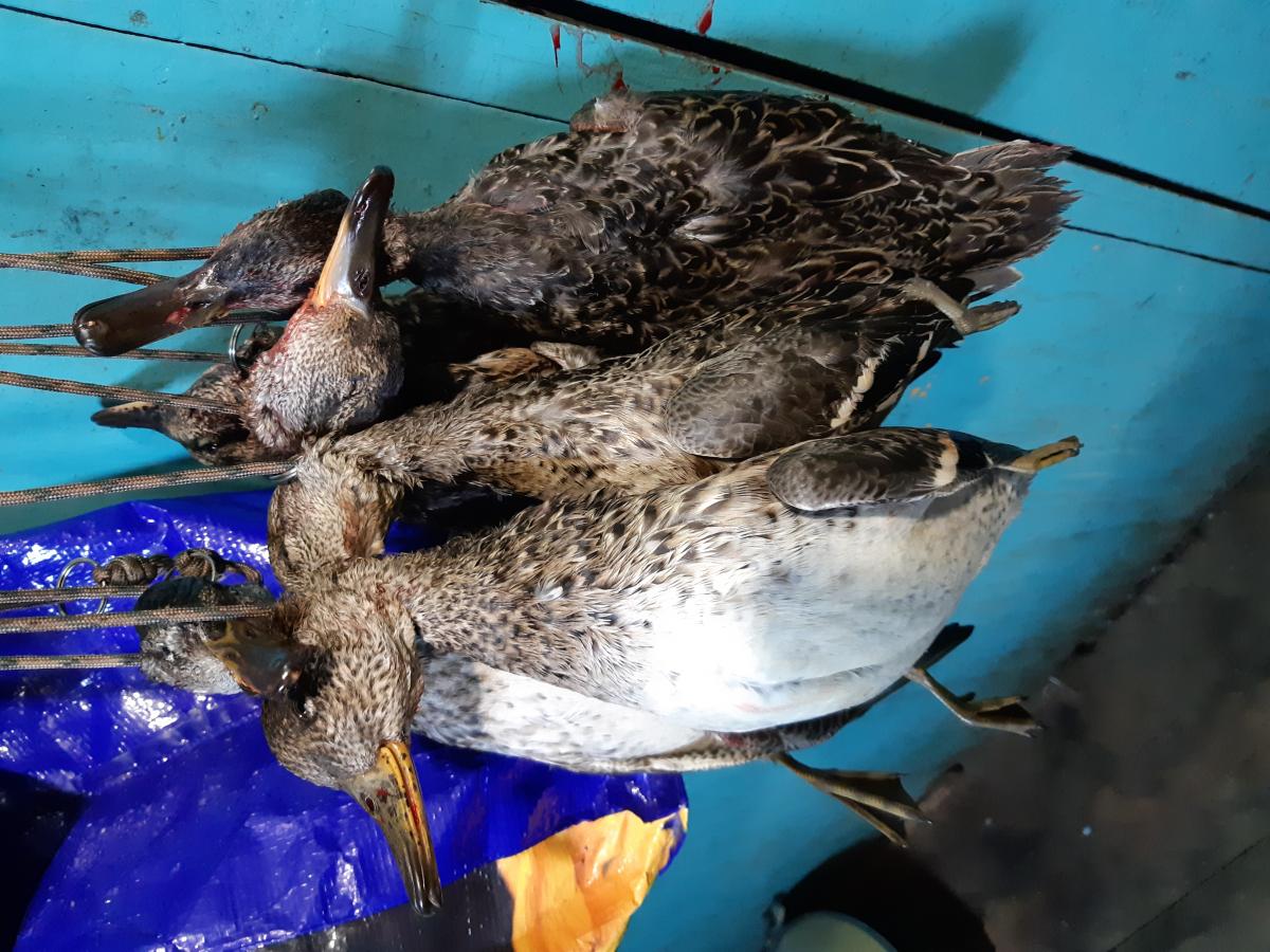 Утром летали утки еще хуже, чем вечером. А то, что прилетало, благополучно улетало от нас))) стая была только одна, но ее удалось посадить в чучела и взять 4 шт . Закрыли утро чирком. В итоге: 8 шт. Но в этот раз в лодке нас было всего двое.
