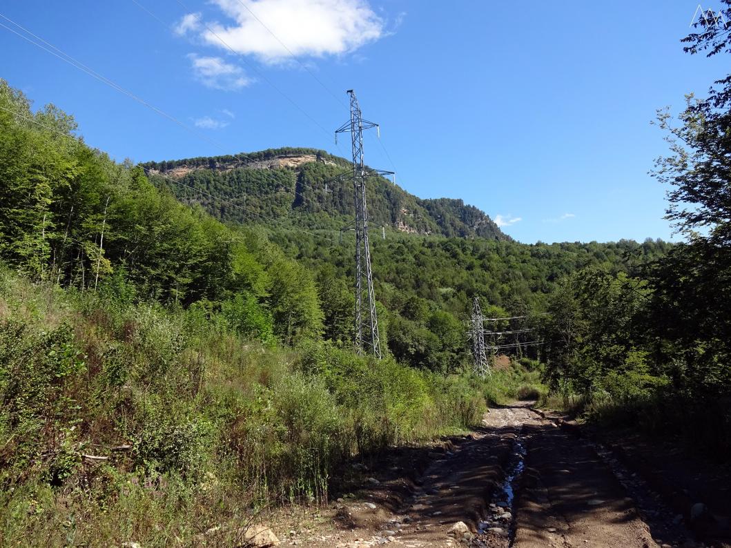 Поход начали не доезжая Хамышков до моста через Бзыху, свернули с трассы по лесной дороге. Через пару километров дорога вышла на просеку под высоковольтку. ЛЭП проходит прямо по лесной зоне.
